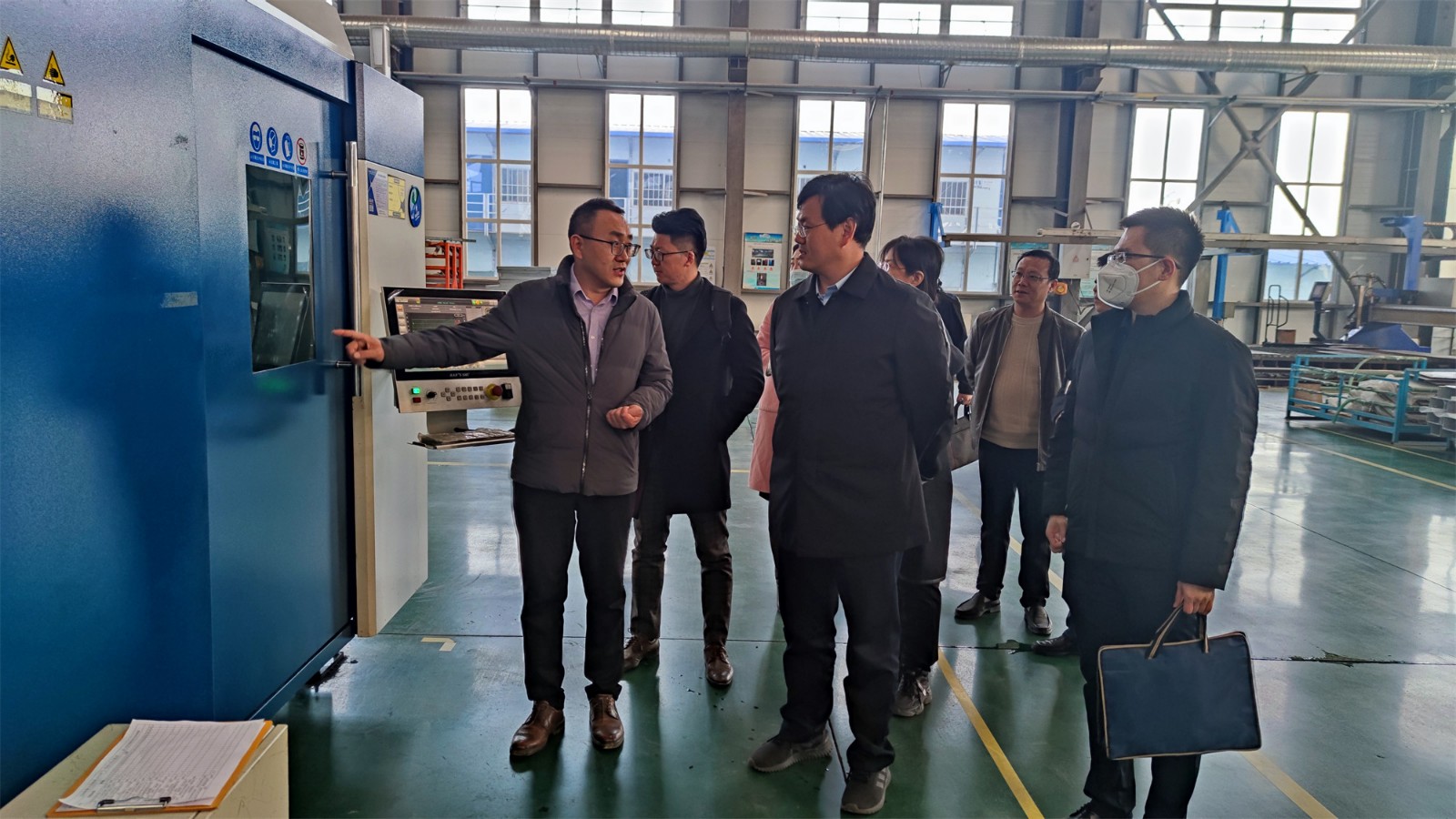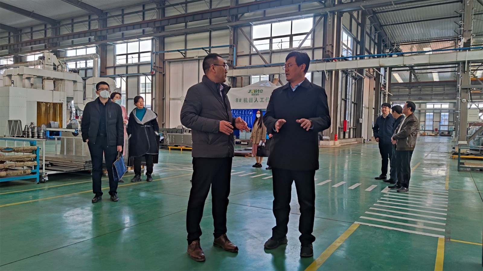 尹處長(zhǎng)一行來(lái)到工廠廠房,參觀了生產(chǎn)現(xiàn)場(chǎng),詳細(xì)詢(xún)問(wèn)了項(xiàng)目投產(chǎn)情況。高總經(jīng)理向尹處長(zhǎng)匯報(bào)了聚力特工業(yè)設(shè)備智能制造產(chǎn)業(yè)化項(xiàng)目的建設(shè)進(jìn)程、生產(chǎn)能力和發(fā)展前景,并對(duì)各級(jí)政府在疫情期間全力保障企業(yè)的生產(chǎn)生活表示了衷心的感謝。