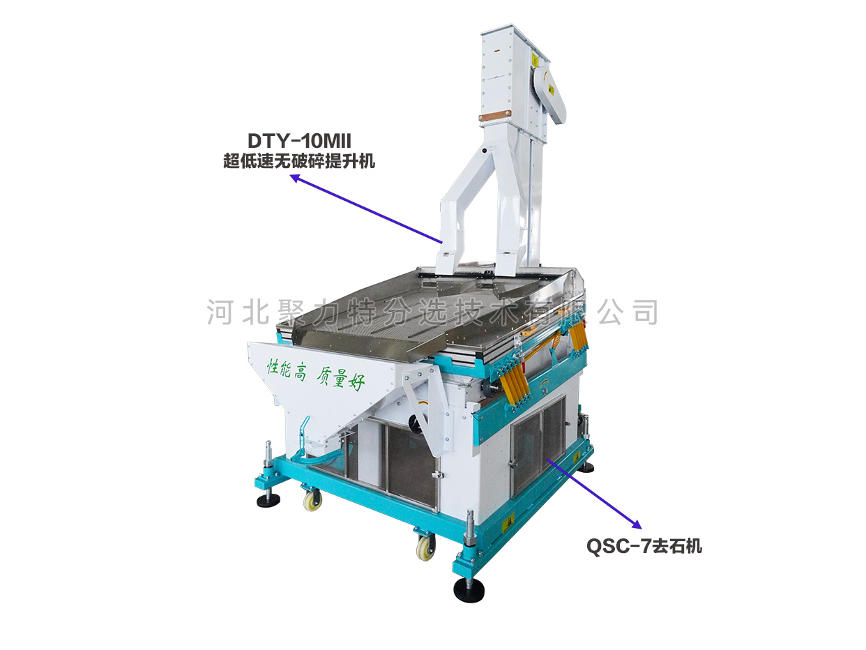 根據(jù)物料中作物和石子的比重差異,通過調(diào)整風壓、振幅等參數(shù),使比重較大的石子沉到底部貼著篩面由低向高運動,比重較小的作物懸浮在表面由高向低運動,從而達到分離的目的。